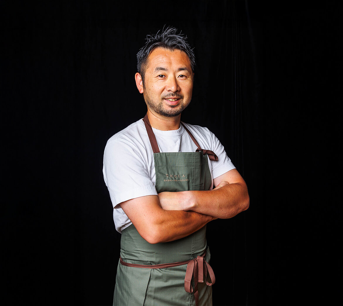 季節感、地元産、大胆さ、想像力。これらの言葉は、エグゼクティブシェフ・岡本将士の現代的な料理哲学を表していま す。 洗練されながらも創造性に富んだアプローチで知られる岡本シェフは、軽井沢および長野全域から厳選した旬の食材を引き立てるプリフィックスメニューを手がけています。 それぞれの料理は「時間」と「土地」の本質を表現するために丁寧に構成され、クラシックな技法と自然の味わいを引き出す直感的な感性が融合しています。 東京の有名ホテルで料理長を務めた後、2022年に軽井沢へ移り、SHOLAの料理を率いるシェフとして、日本の食文化と生産者への深い敬意を持ちながら革新を続けています。