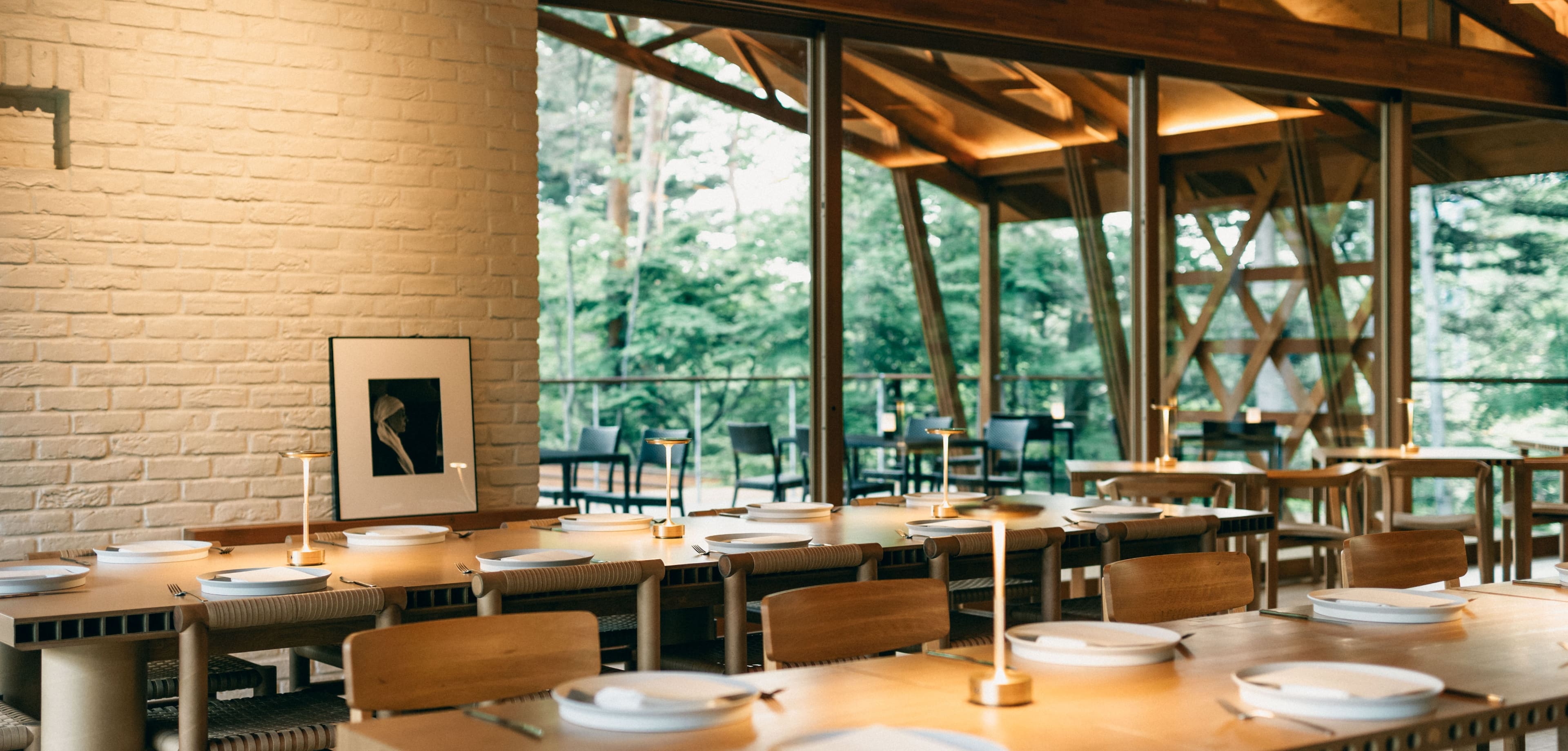 SHOLAは、地元の独自の食材を追求し、地元の生産者との深い繋がりを大切にするレストランです。この精神は、料理を通じて新しい場所を創造し、持続可能性のサイクルを促進することにも及びます。私たちのアイデンティティに含まれるモチーフは、軽井沢の多様な生態系のサイクルを反映しており、資源、価値、生産が調和して結びつく世界を表現しています。SHOLAは、今日私たちの世界で最も必要とされているものを考え、表現し、共有することを目指しています。坂茂氏によってデザインされた美しい空間で、自然に耳を傾ける食事をお楽しみください。