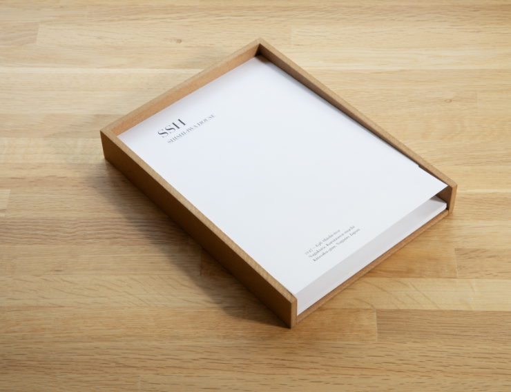 ししいわハウスの一部をご自宅でも楽しめるのが、この特注の木製メモホルダーです。数々の世界的な賞に輝く建築家、坂 茂氏が当館のために特別にデザインした逸品です(各ゲストルームのデスクに備えられています)。